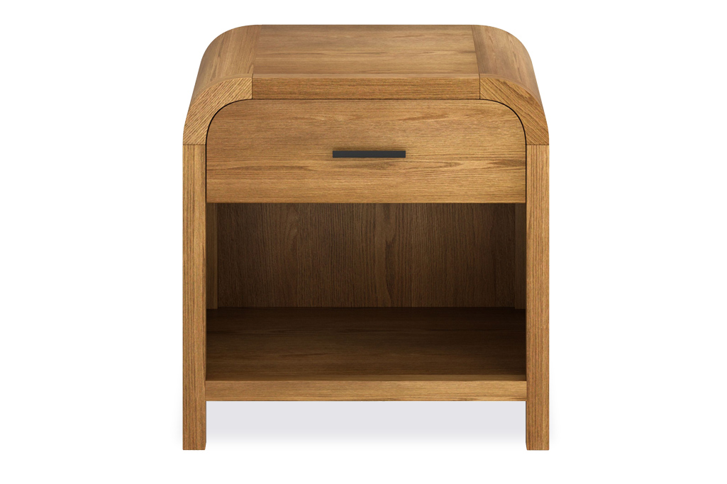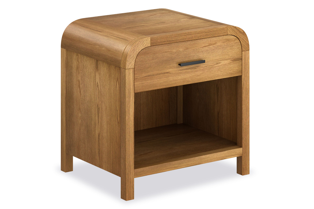Embrace the curves with this beautiful 1-drawer accent table. The rich, wood-grain finish will work well with any décor style. The open shelf and fully extending drawer offer plenty of storage space . Great as a bedside table, or by a sofa or accent chair in the living room.