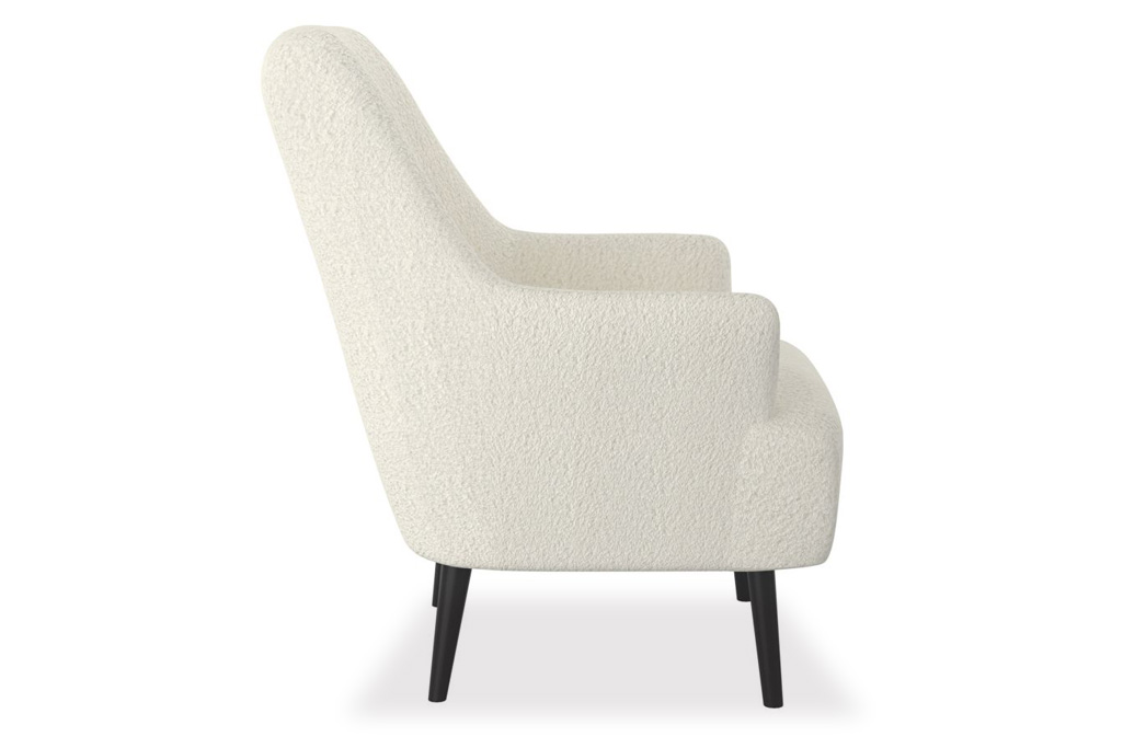 Gorgeous accent chair that just invites everyone to come and have a seat. Soft, boucle fabric and plush cushioning make it a comfortable place to relax with a good book and a cup of tea. The seamless look makes it a statement piece that will work in any room of the house. The matte black solid wood legs are the perfect finishing touch.
