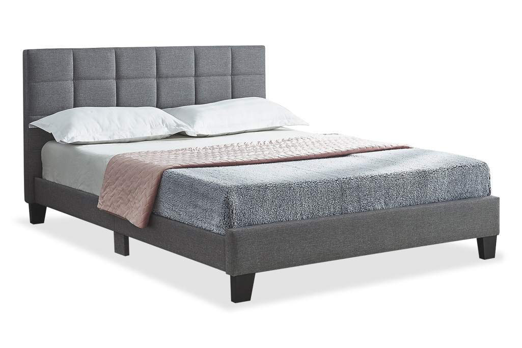Create a beautiful look in your bedroom with this panel tufted low-profile platform bed frame, upholstered in a grey linen-look fabric. Sized for double mattresses (not included), this upholstered bed is ideal in limited spaces for small homes, apartments, or condos. All parts and hardware for assembly are included.