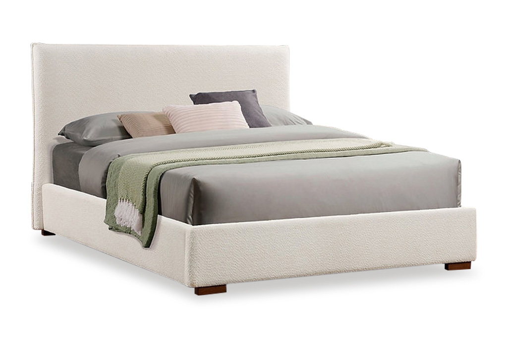 Sleek and contemporary bed that exudes both style and comfort. This modern upholstered bed features a stunning light beige boucle fabric that offers a soft, textured surface, adding a touch of sophistication to any bedroom.