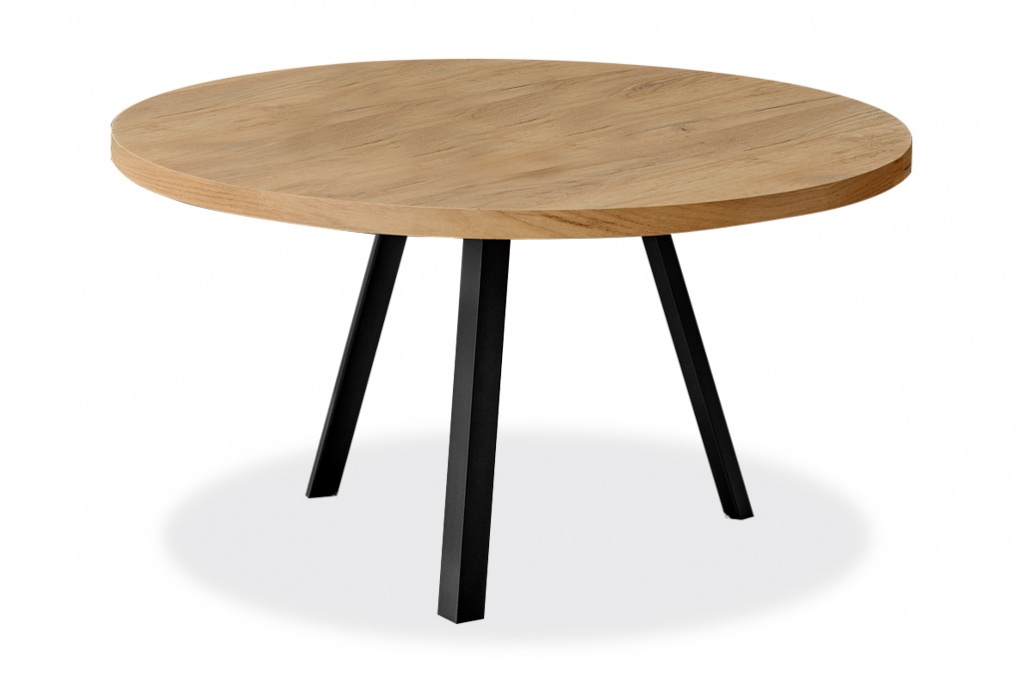 When you combine mid-century modern with industrial style, you get this upgraded simple, round coffee table for today's home! The warm, golden pine wood look laminate top adds texture to a room, contrasting with the angled black metal legs for stability and structure. Spacious enough to place a decorative item, some magazines or books, or a tray of appetizers when entertaining. Whether you place this cocktail table in your living room, office, or basement, it will anchor your space with confidence.